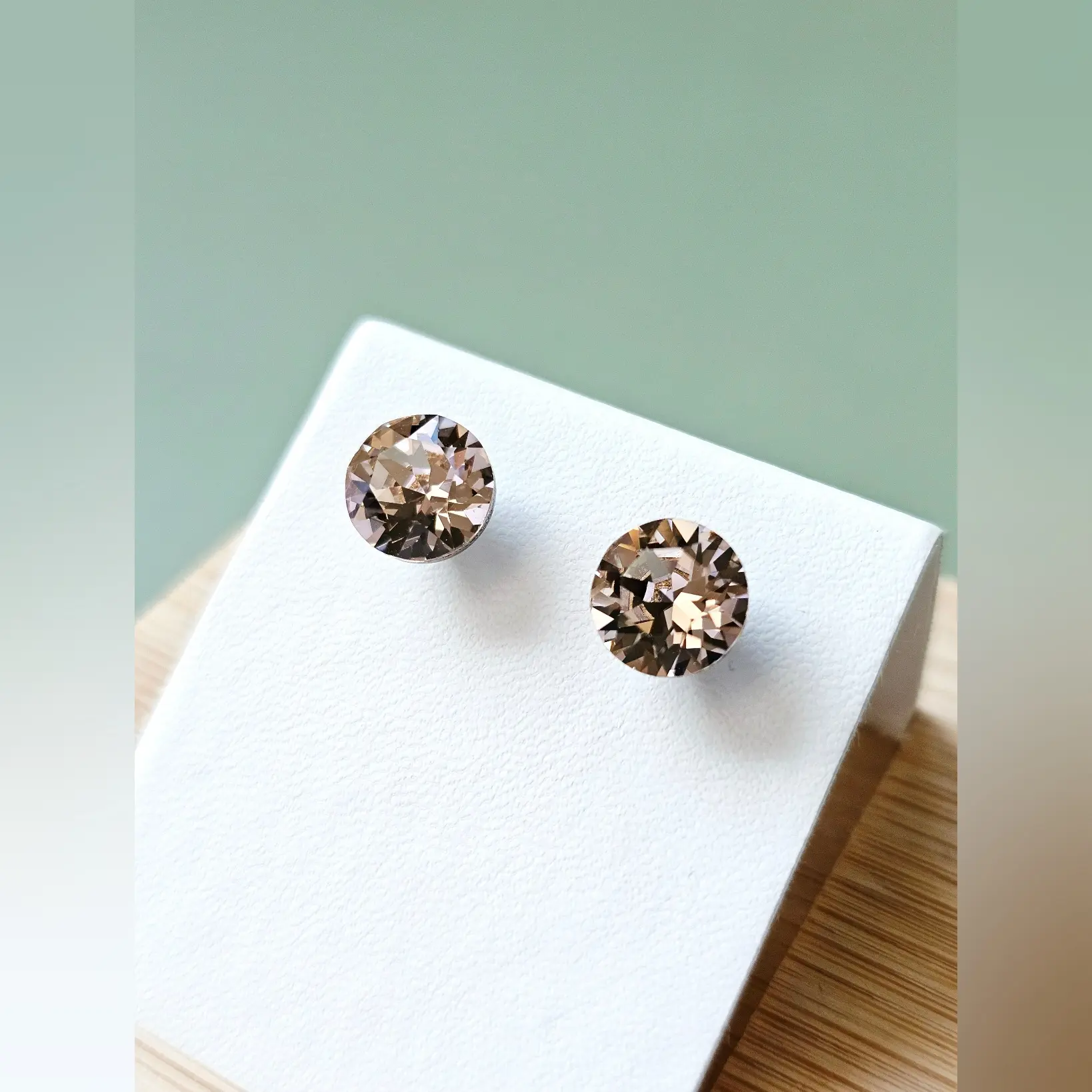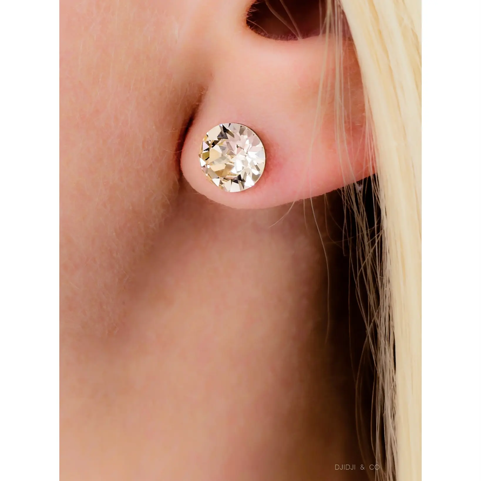 Naušnice sa kačenjem na šaraf iz Djidji & Co Fancy Casual kolekcije namijenjene za svakodnevno nošenje. Vrhunski fasetiran za savršen odsjaj, okrugli kamen šaton u klasičnoj verziji te nježno-zlatnoj boji svile je ukalupljen u made-to-fit originalne hipoalergenske metalne komponente za dugotrajno nošenje. Prikladne starijima od 16 g. Širine 8mm, idealno se uklapaju u svakodnevna poslovna kao i minimalistička svečana izdanja. Pored bijelih, zlatnih i kontrastno crnih tonova, naušnice Silk Round Medium su izuzetno kompelementarne i sa roze tonovima.